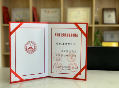 在推动城市加快发展、转型发展的历史进程中,劳动模范始终是一个令人钦佩的光荣群体,他们以逐月的工作业绩彰显了新时代劳动群众奋发有为的崭新形象。车莹莹女士作为沈阳市优秀的创业带头人,依靠突出的工作成绩和奉献精神,曾获得沈阳市总工会“优秀创业带头人”,民革沈阳市委会“参政议政工作先进个人”,民革浑南区总支“特别贡献奖”,沈阳市委统战部理论课题调研成果荣获优秀调研成果三等奖,浑南区2020年五四杰出青年人物......等多项个人荣誉。她多年来始终立足本位、胸怀全局,心系社情、勇于担当,用奋发进取的企业家精神,在学习思考中开拓视野,在工作实践中增长技能,在创新创造中激发才智,练就与时代要求相适应的过硬本领,展现沈阳劳动者的风范,深刻的诠释了新时代劳模的内涵,引领社会风尚。